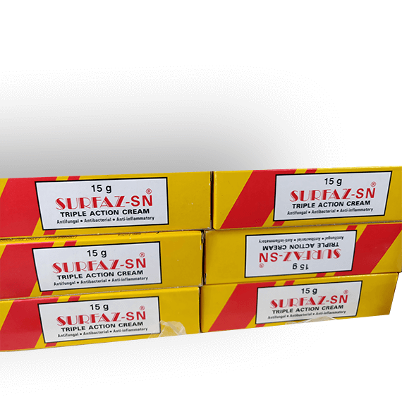 Surfaz-SN Triple Action Cream is commonly used to treat a range of skin problems, including fungal infections, bacterial infections, and inflammatory skin conditions. It can be applied topically to the affected areas, following the recommended dosage and application frequency as advised by a healthcare professional. However, it’s important to note that prolonged or excessive use of corticosteroids like hydrocortisone can lead to skin thinning and other side effects, so it’s crucial to use the cream as directed and under medical supervision.